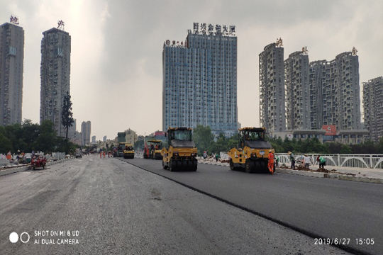 我公司承擔(dān)的六安市龍河路橋工程瀝青路面經(jīng)過(guò)一天兩夜的艱苦奮戰(zhàn),于6月28日完成主橋面瀝青攤鋪工程,為7月1日順利通車(chē)奠定了基礎(chǔ)。